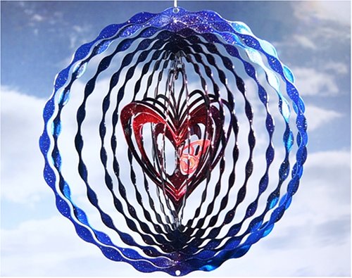 3-D Butterfly heart image within an image. The vanes catch and reflect and radiate sun light. Powder coated with a 2-warranty aginst rust. The vanes of the butterfly heart radiate light in or out giving the illusion of each vane by itself. Made of heavy steel and the Butterfly Heat is powder coated. Made in U.S.A. and comes with hooks and swival. Twirly Things.
