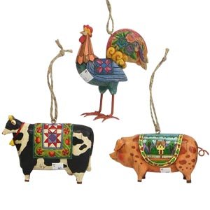 Farm Animal Ornament Set/3 - set includes a pig, cow, and a rooster. Stone resin, each measures approx 3 3/4" long.