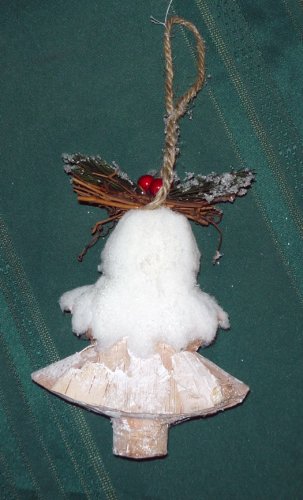 Our Christmas Tree Ornament is made of birch bark and Christmas cotton. They stand 7" high and are topped with pine & berry.