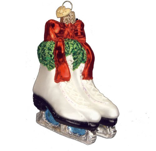 Buy HOLIDAY SKATES ORNAMENT. This beautiful glass ornament was carefully mouth-blown into a finely crafted mold. Then a hot solution of liquid silver was poured inside. Finally, the ornament was delicately hand painted with many bright lacquers and glitters for you to enjoy! 3 1/2" Tall
