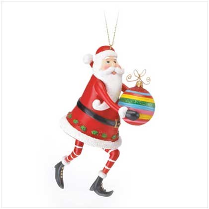 Fun and festive, this Santa ornament will brighten any Christmas tree! Polyresin. 3 1/4'' x 2'' x 4 1/2'' high.
