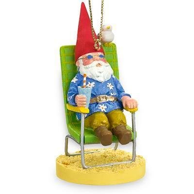 Buy Garden Gnome Beach Chair TiKi Bar Decor Ornament. This Garden Gnome is seated in a beach chair sipping a tall tropical drink, wiggle your toes in the sand, seagull perched, a must have for your tiki beach collection Christmas Tree.