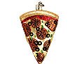 Buy Pizza Slice Ornament. This beautiful glass ornament was carefully mouth-blown into a finely crafted mold. Then a hot solution of liquid silver was poured inside. Finally, the ornament was delicately hand painted with many bright lacquers and glitters for you to enjoy! 3"