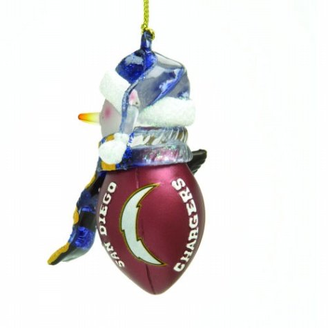 Buy NFL 2.75" Striped Acrylic Snowman Football Ornament - San Diego Chargers (Set of 4). 15442 Our Striped Acrylic Striped NFL Snowman has an acrylic head and scarf emblazoned in official team colors with a football body displaying your favorite team's logo. Features: -Hand painted resin. -Features official San Diego Chargers logo and colors. -Indoor or outdoor use. -Sold in set of 4. -Dimensions: 3'' H x 1'' W x 1'' D.