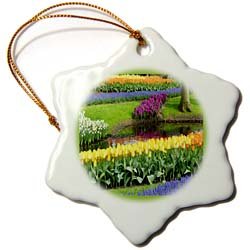 Garden and Stream - 3 Inch Snowflake Porcelain Ornament details: