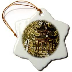 Chinese Pagoda Garden - 3 Inch Snowflake Porcelain Ornament details: