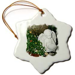 Garden Angel - 3 Inch Snowflake Porcelain Ornament at a reasonable price. Garden Angel Ornament is measuring 3 inches. This Glossy Porcelain Snowflake Ornament is perfect gift for grandparents, aunts, uncles and friends. Commemorate each holiday season with a new ornament. Image is printed on both sides. Comes with the gold hanging cord.