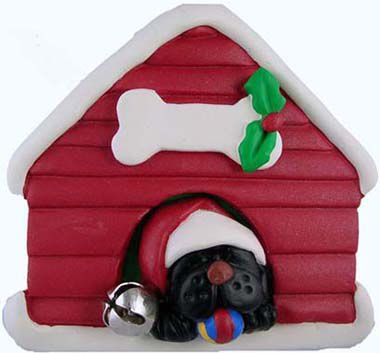 Find and compare the best prices and deals on Black Dog in Doghouse Christmas Ornament 2-1/2 by 2-1/2 at a reasonable price. This black puppy dog snoozes in his dog house with his toy ball under his chin and wearing a Santa cap. Ornament is 2-1/2 inches by 2-1/2 inches, durable resin with a gold cord for hanging. The bone-shaped plaque can be personalized with a permanent marker.