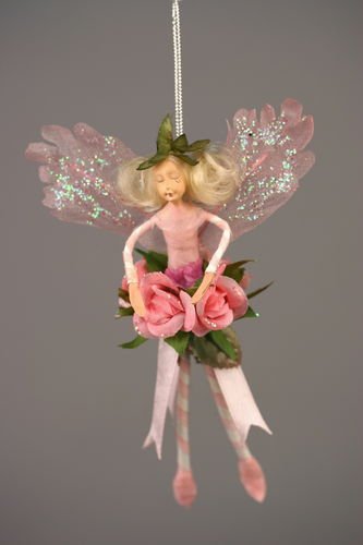 Pink Rose Little Flower Garden Fairy Fairy 6" Ornament details: