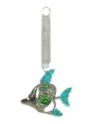Find and compare the best prices and deals on Hanging Garden Ornament Colorful Fish on Spring Glass and Silver at a reasonable price. This colorful 4 inch tall fish hangs from a bouncy spring to catch every wisp of breeze that wanders through your garden. Lovely blue and green colored glass fills in the silver colored framework. Can be hung from a tree, shepherd's hook, or even used indoors.